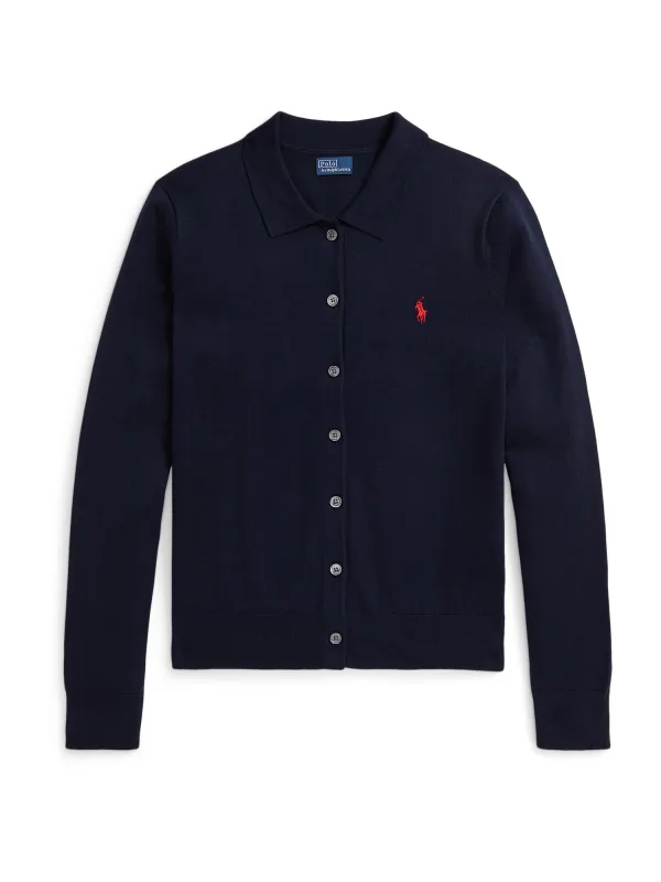 Gebreid jack van Polo Ralph Lauren voor dames;Look: effen;Pasvorm: Slim fit;Sluiting: enkele knoopsluiting;Applicatie: Gestikt logo;Kraagmodel: Overhemdkraag;Mouwvorm: lange mouwen;Mouwboord: geribd;Rompzoom: geribd;Materiaalverwerking: Fijn gebreid;Materiaal: Katoenmix