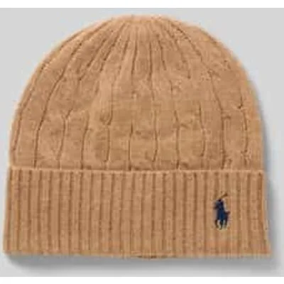 Dames muts van Polo Ralph Lauren;Mix van wol en kasjmier;Brede omslag;Kabelpatroon;Labelstitching