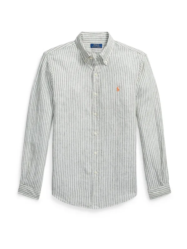 Heren vrijetijdsoverhemd van Polo Ralph Lauren;Look: meerkleurig;Pasvorm: Regular Fit;Overhemdkraag: Button-downkraag;Knoopsluiting: enkelrijig;Patroon: gestreept;Pasvorm volgens de fabrikant: Custom fit;Applicatie: Logo-detail;Details: Achterpas met cacharel-plooi;Sluiting: enkelvoudige knoopsluiting;Mouwvorm: lange mouw;Mouwboord: Manchet;Rompzoom: afgerond;Manchetsoort: sportmanchet;Materiaalverwerking: gevlamd garen;Materiaal: puur linnen
