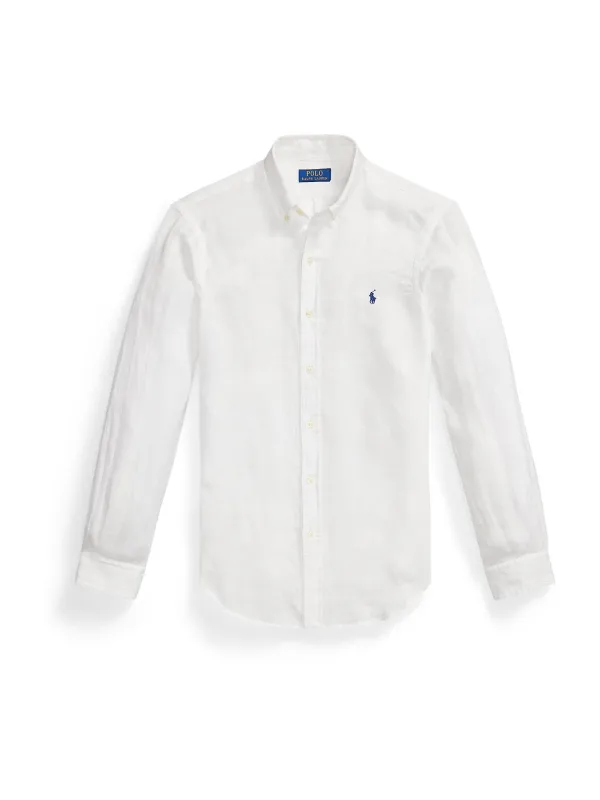Heren vrijetijdsoverhemd van Polo Ralph Lauren;Look: effen;Pasvorm: Slim fit;Overhemdkraag: Button-downkraag;Knoopsluiting: enkelrijig;Applicatie: Logo-detail;Sluiting: enkelvoudige knoopsluiting;Mouwvorm: lange mouw;Mouwboord: Manchet;Rompafwerking: licht afgerond;Manchetsoort: sportmanchet;Materiaalverwerking: gevlamd garen;Materiaal: puur linnen
