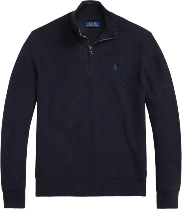 Pullover van Polo Ralph Lauren is een stijlvolle heren trui met een opstaande kraag en ritssluiting. Deze regular fit trui, gemaakt voor een casual gelegenheid, heeft een effen patroon en lange mouwen met ribgebreide mouwboorden. Perfect voor een zakelijke of casual look.