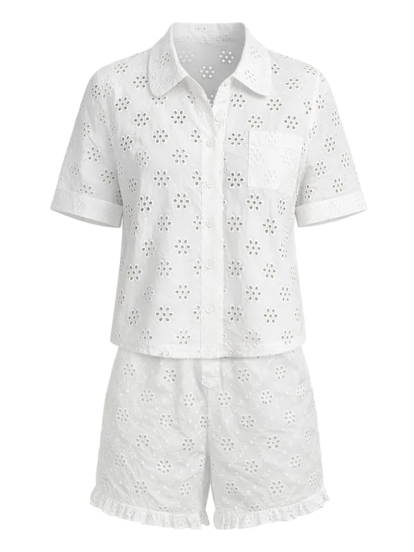 Polo Ralph Lauren Pyjama ‘ Cotton Eyelet ‘ wit