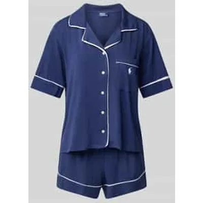 Damespyjama van Polo Ralph Lauren;Materiaalmix met lyocell;Los model ;Model 'POLO ESSENTIALS';Logostitchings;Borstzak;Pyjamabovendeel met reverskraag;Doorknoopsluiting;Korte pyjamabroek met elastische band