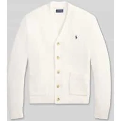 Gebreid herenjack van Polo Ralph Lauren;Look: effen;Pasvorm: Regular fit ;Sluiting: enkele knoopsluiting;Applicatie: Gestikt logo;Hals: V-hals;Mouwvorm: lange mouwen;Mouwboord: geribd;Rompzoom: geribd;Zakken: opgestikte steekzakken;Materiaalverwerking: Knitwear;Materiaal: puur katoen