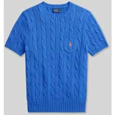 Damespullover met korte mouwen van Polo Ralph Lauren;Puur katoen;Slim fit;tricotlook;Borstzak;Gestikt logo;Ronde hals;Elastische boordjes;Ruglengte bij maat S: 55 cm;Mouwlengte bij maat S: 20 cm