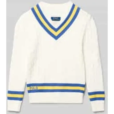 Kinderen Gebreide pullover van Polo Ralph Lauren Teens;look: effen;Pasvorm: regular fit;Motief: kabelpatroon;Applicatie: label-opschrift;Details: contrasterende streep;Hals: V-hals;Mouwvorm: lange mouw;Mouwboord: geribd;Rompzoom: geribd;Materiaalverwerking: Knitwear;Materiaal: puur katoen