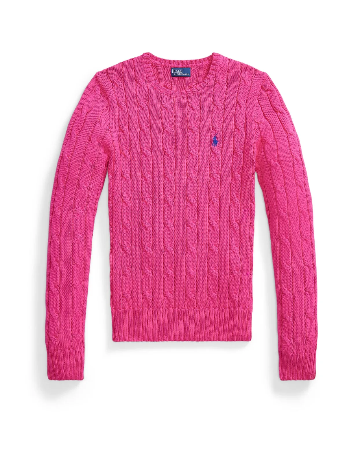 Dames gebreide trui van Polo Ralph Lauren;Puur katoen;Slim Fit;Model 'JULIANNA';Kabelpatroon;Labelstitching;Ronde hals;Ruglengte bij maat S: 58 cm;Mouwlengte bij maat S: 69 cm