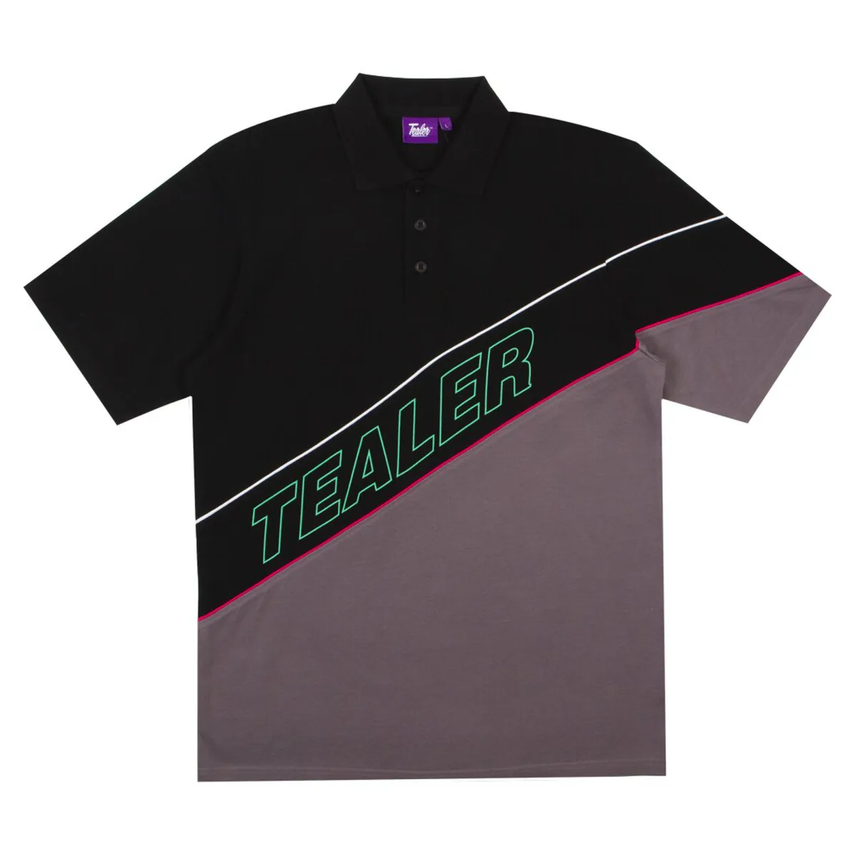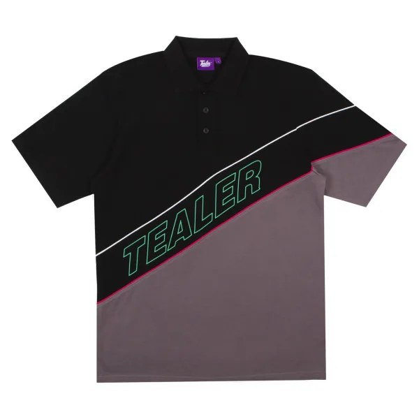 Polo van Tealer voor vrouwen. Rechte snedeKlassieke geribde kraagKnoopsluitingKorte mouwenBedrukte borst Tealer Diagonale en contrasterende lijnen Gesigneerd en geweven label op de bodem100% katoen