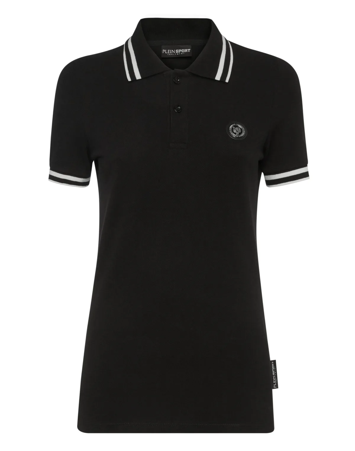 Check out the comfort of this polo shirt, great for a tennis match or on a golf course. Maximum comfort thanks to the natural flexibility of cotton piqué Logoed button-up collar Rib knit tipping collar and cuffs Rubberized patch featuring the Tiger sewn at left chest Brand glitter print on the back Two-needle stitching bottom hem Figure fitting