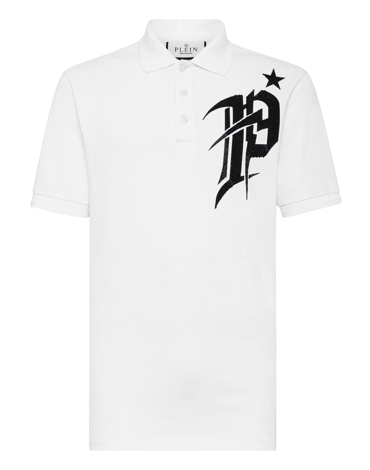 Verfraaid Ontdek de originaliteit van dit poloshirt met korte mouwen in katoen piqué, versierd met de iconische elementen van het merk. Katoen piqué De iconische rhinestoned elementen van het merk zijn gedrukt op de linkerborst en op de rug Knopen met logo Kraag en manchetten gebreid in Chevron rib Twee zijsplitten