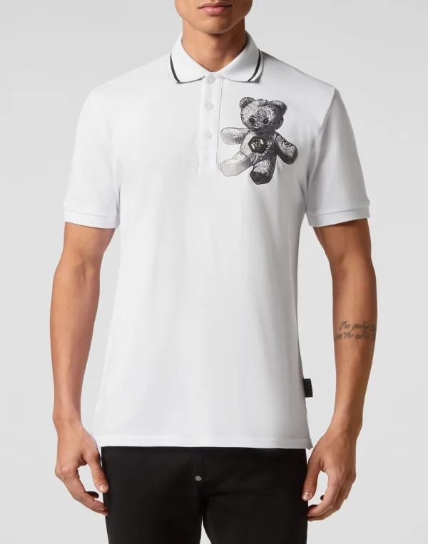 Een klassieker kan ook een alternatieve draai krijgen. Kijk hoe we de piqué polo hebben gerevolutioneerd. Katoen piqué De iconische Teddybeer samen met de PP Hexagon op een saffiaan lederen patch is te zien op de linkerborst Paisleyprint stofdetails Kantelbare kraag Ribgebreide kraag en manchetten Twee zijsplitten