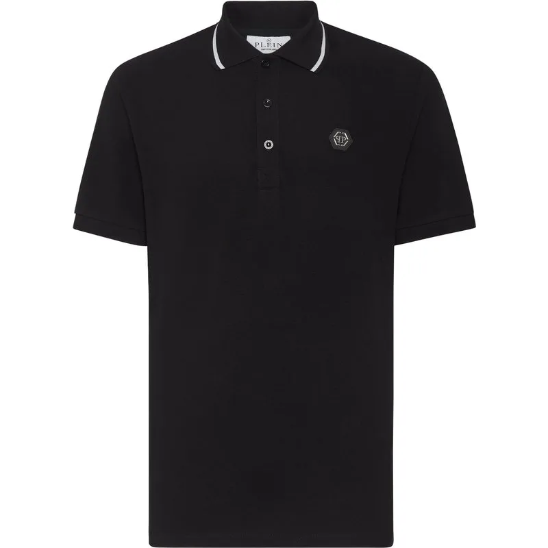 Verfraaid Een klassieker kan ook een alternatieve draai krijgen. Kijk hoe we de piqué polo hebben gerevolutioneerd. Katoenen piqué De Paisley-versie van de iconische doodskop is op de rug gegraveerd PP Hexagon op een saffiaanleren patch op de linkerborst Kantelbare kraag Ribkraag en -manchetten Twee zijsplitten