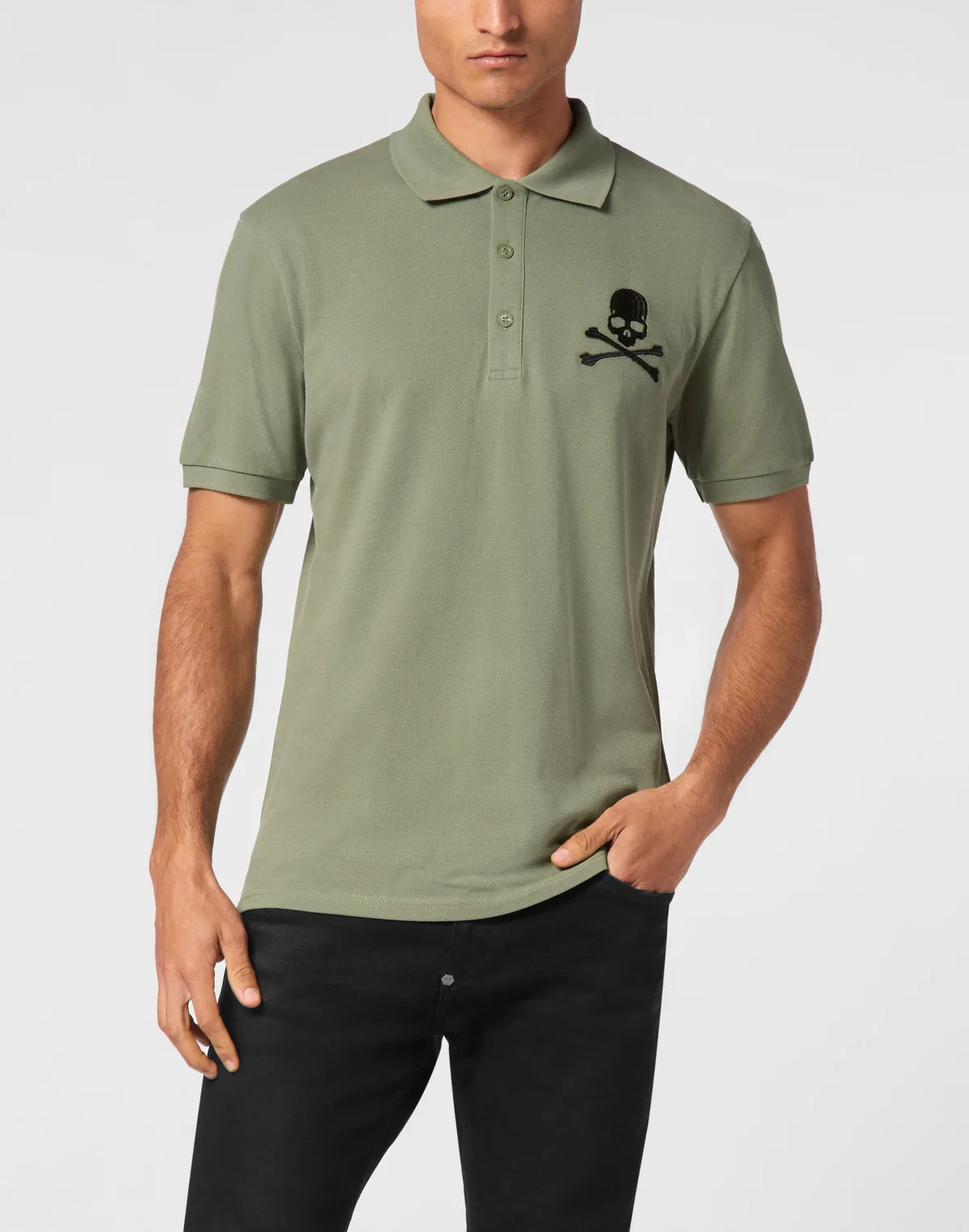 Een klassieke must-have: de katoenen piqué polo met korte mouwen. Katoen piqué Iconische Skull&Bones geborduurd op linkerborst PP Hexagon op een saffiaan lederen patch genaaid op het juk Knopen met logo Chevron ribgebreide kraag en manchetten Twee zijsplitten