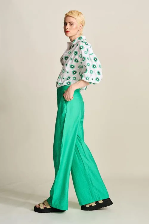 Inspirerend en trendy, deze broek is perfect voor de modieuze dame op zoek naar een frisse toevoeging aan haar kledingcollectie. Verenig trend en comfort met dit pronkstuk, ideaal voor zowel een casual als een chique gelegenheid, en perfect te combineren met een strakke top of een licht overhemd voor een gebalanceerde look.