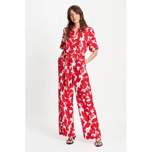 POM Amsterdam gebloemde jumpsuit rood
