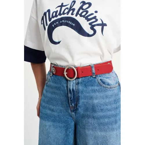 Voeg een krachtig kleuraccent toe aan je outfit met deze POM Amsterdam leren dames riem in diep rood. De effen kleur en subtiele zilverkleurige gespen en details geven elke look net wat meer karakter, of je nu een jeans, pantalon of vrouwelijke rok draagt. Gemaakt van 100 procent leer voelt de riem stevig aan en vormt deze zich mooi naar je taille. Een tijdloze basic met een opvallende uitstraling.Details die je elke dag draagt Gemaakt van 100 procent leer voor een stevige en vormvaste pasvorm Dieprode kleur die goed combineert met denim, zwart, wit en neutrale tinten Zilverkleurige hardware voor een moderne, frisse uitstraling Effen design uit de Boutique collectie, ideaal als stijlvolle basis in je garderobe Geschikt als broekriem, houdt je tailleband netjes op zijn plekAltijd een sterke finishing touchDeze riem draag je eenvoudig door de lussen van je favoriete broek of rok. De rode kleur zorgt meteen voor een duidelijk accent in je outfit, zonder druk te ogen. Handig voor werkdagen, etentjes of een dagje weg, wanneer je snel een verzorgde look wilt creëren.POM Amsterdam, bekende prints en krachtige basicsPOM Amsterdam staat bekend om kleurrijke designs en doordachte details. Naast opvallende prints biedt het merk ook sterke basics die je graag vaak draagt. Deze leren riem past daar precies bij, met aandacht voor materiaal en afwerking zodat jij lang plezier hebt van je aankoop.Een compacte accessoire die je dagelijkse outfits moeiteloos meer uitstraling geeft.