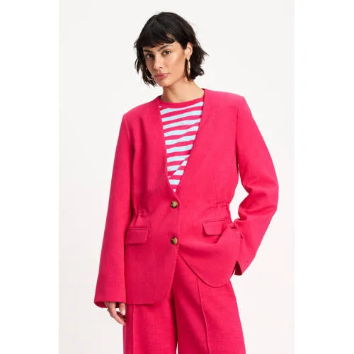Val op in elke setting met deze POM Amsterdam blazer in zachte roze kleur. De blazer heeft een regular fit en een klassieke reverskraag, waardoor de blazer er verzorgd uitziet zonder te formeel te worden. De soepele stof valt mooi om het lichaam en de lange mouwen met rechte inzet geven een rustige, tijdloze uitstraling. Ideaal voor dagen waarop je er verzorgd uit wilt zien, maar je ook vrij wilt bewegen.Verzorgde details voor elke dag Regular blazer met klassieke reverskraag voor een elegante, moderne look Zachte roze kleur die eenvoudig te combineren is met neutrale tinten of denim Lange mouwen met rechte mouwinzet voor een nette, rustige belijning Knoopsluiting aan de voorkant voor een verzorgd silhouet, open of dicht te dragen Sierzakken aan de voorkant voor een subtiele, geklede uitstraling Effen design dat geschikt is voor werk, etentjes en speciale gelegenhedenVan werkdag tot weekendDeze roze blazer komt goed tot zijn recht op een rustige basis, zoals een wit T-shirt en een rechte jeans, maar past ook mooi over een jurk. Draag hem dichtgeknoopt voor een meer formele look of open voor een relaxte, casual uitstraling. Perfect voor de lente, wanneer je een extra laag nodig hebt zonder zware jas.POM Amsterdam, bekende prints en kleurenPOM Amsterdam staat bekend om doordachte ontwerpen met aandacht voor kleur en afwerking. Elk item is ontworpen om gemakkelijk te combineren te zijn en toch speciaal aan te voelen. Met deze blazer haal je een stijlvol en betrouwbaar kledingstuk in huis dat seizoen na seizoen in je kast blijft hangen.Een veelzijdige blazer die je garderobe in één keer frisser en stijlvoller maakt.