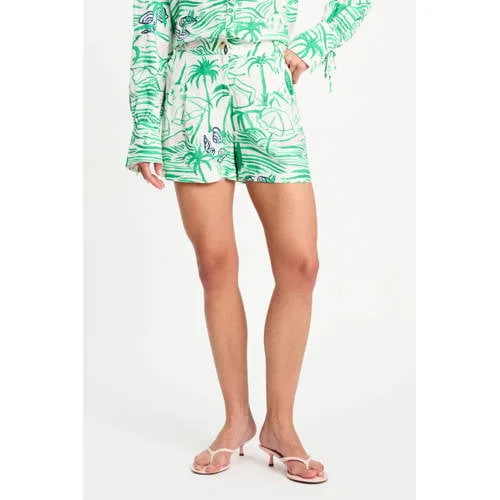 Fris, licht en relaxed, deze groene dames short met all over print van POM Amsterdam is klaar voor zonnige dagen. De casual short heeft een loose pasvorm en een regular waist, waardoor de stof soepel langs je benen valt en comfortabel rond je middel aansluit. De mix van 70% Viscose / 30% Linnen voelt luchtig aan, ideaal voor warme zomerdagen.Details die het verschil maken Casual short met loose pasvorm voor een ontspannen look Regular waist, comfortabel in de taille All over print in groen voor een levendige uitstraling Gemaakt van 70% Viscose / 30% Linnen, licht en ademend Rits- en haaksluiting aan de voorkant Zijzakken voor kleine essentials Onderdeel van een co-ord set, goed te combineren met bijpassende top of blouse Uit de Boutique collectie, ontworpen met een zomerse lookCasual short voor zomerse dagenDeze korte broek is een praktische basis voor al je zomerse outfits. Combineer de short met het bijpassende item voor een co-ord set, of draag de short met een eenvoudig T-shirt of een luchtige blouse. Sneakers, sandalen of slippers eronder en je bent klaar voor een dag in de stad, op het terras of op vakantie.POM Amsterdam: kleur en print in je garderobePOM Amsterdam staat bekend om kleurrijke ontwerpen en opvallende prints. De collecties worden ontworpen met aandacht voor detail en draagcomfort, zodat je items krijgt die er niet alleen mooi uitzien, maar ook comfortabel zitten. Met deze short voeg je een opvallend, maar toch makkelijk te combineren stuk toe aan je kledingkast.Een zomerse korte broek die je garderobe direct een frisse update geeft.