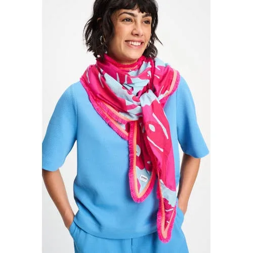 Breng kleur in je outfit met deze POM Amsterdam sjaal in een zachte driehoekvorm. De combinatie van roze en lichtblauw met een subtiele bloemenprint geeft direct een frisse uitstraling. Gemaakt van 100 procent katoen voelt de stof luchtig en soepel aan, passend bij zowel frisse lentedagen als koele zomeravonden.Speelse driehoekvorm met bloemenprint Driehoekige 'triangle scarf' die je makkelijk nonchalant om je nek knoopt of losjes omslaat Royale afmeting van 216x140 cm voor verschillende draagstijlen Zachte katoenen stof die prettig aanvoelt op de huid Bloemenprint in roze en lichtblauw voor een frisse, kleurrijke look Combineert goed met zowel een basic T-shirt als een nette blouse of jurkEen sjaal die met je dag meebeweegtVoor een wandeling, een dag op kantoor of een etentje, deze sjaal sluit makkelijk aan bij jouw plannen. Sla de driehoek om je schouders als lichte omslagdoek of draag de punt naar voren voor een speels effect. De royale lengte maakt het eenvoudig om te variëren.POM Amsterdam: printen met karakterPOM Amsterdam staat bekend om kleurrijke ontwerpen met zorg getekende prints. De collecties worden ontworpen met aandacht voor draagbaarheid en detail. Met een accessoire van POM Amsterdam voeg je in één keer een herkenbaar accent toe aan je garderobe, geschikt voor dagelijks gebruik én speciale momenten.Een veelzijdige sjaal die je het hele jaar door erbij pakt.