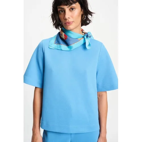 Geef je outfit een verfijnde finishing touch met deze POM Amsterdam sjaal. Deze vierkante bandana in effen blauw is gemaakt van 100% zijde en heeft een subtiele glans. Het compacte formaat van 50x50 cm maakt het een veelzijdig accessoire voor lente en zomer, dat je eenvoudig op verschillende manieren draagt.Kleine bandana, grote mogelijkheden Vierkante bandana met afmeting 50x50 cm, ideaal om rond de hals, in het haar of aan een tas te knopen Gemaakt van 100% zijde, voelt zacht en soepel aan op de huid Effen blauwe kleur, gemakkelijk te combineren met basic en opvallende outfits Lichte, luchtige kwaliteit, geschikt voor lente en zomer Onderdeel van de Boutique collectie, met aandacht voor detail en afwerkingStyling rond je hals, in je haar of aan je tasDeze bandana draag je strak geknoopt rond je hals, nonchalant als haarband of speels aan het handvat van je tas. Door het kleine formaat stop je de sjaal makkelijk in je tas, zodat je snel van look kunt wisselen gedurende de dag.POM Amsterdam: kleur en print als uitgangspuntPOM Amsterdam staat bekend om sjaals en accessoires met zorg ontworpen dessins en kleuren. Elk ontwerp krijgt aandacht in materiaalkeuze en pasvorm, zodat het prettig draagt en lang mooi blijft. Met deze bandana voeg je een stijlvol detail toe dat past bij de herkenbare signatuur van het merk.Een compact, zijdeachtig accessoire dat je het hele seizoen opnieuw gebruikt in verschillende looks.