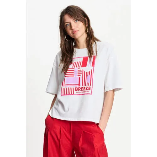 Fris, licht en speels: dit POM Amsterdam dames T-shirt van 100% katoen is een praktische basis voor je voorjaarsgarderobe. De ecru ondergrond wordt gecombineerd met rode en roze accenten, waardoor de print direct in het oog springt zonder druk te worden. De ronde hals en korte rechte mouwen geven een relaxed silhouet dat makkelijk te stylen is voor alledaagse looks.Details die het verschil maken Gemaakt van 100% katoen voor een zachte touch op de huid Ecru met rode en roze tinten voor een frisse, veelzijdige kleurcombinatie Korte rechte mouwen voor een luchtig gevoel op warmere dagen Ronde hals die mooi aansluit en goed te combineren is met kettingen Printopdruk voor een levendige uitstraling Onderdeel van de Boutique collectie, in standaardmaten verkrijgbaarGemakkelijk te combineren in je dagelijkse outfitsDit T-shirt past goed bij een mom jeans, een korte denim rok of een wijde pantalon. Door de rechte mouwen en het soepele katoen valt het mooi langs je lichaam. Draag het los voor een ontspannen look of half ingestopt in je broek voor iets meer vorm.POM Amsterdam: kleur en print met aandachtPOM Amsterdam staat bekend om kleurrijke collecties met doordachte prints en vrouwelijke pasvormen. Elk ontwerp is met zorg uitgewerkt, met aandacht voor draagcomfort en details. Zo combineert POM Amsterdam creatieve dessins met materialen die prettig aanvoelen, zodat je je de hele dag comfortabel voelt in je outfit.Een luchtig T-shirt dat je garderobe een frisse uitstraling geeft.