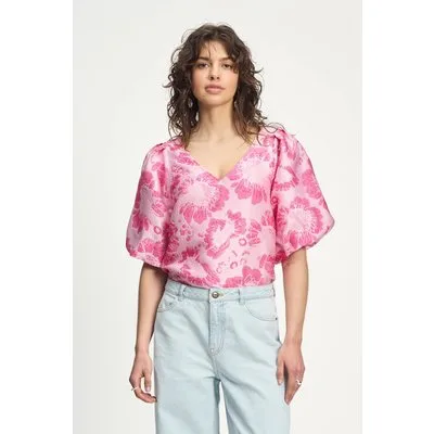 POM Amsterdam Top – Floral Jacquard Raspberry