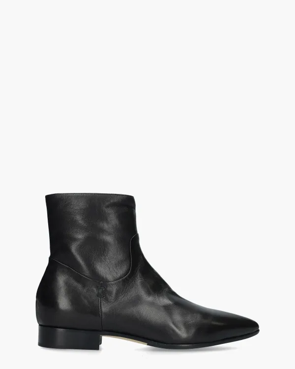Verfijnde eenvoud vormt de basis van de Pomme D'Or Madalina dameslaars. Gemaakt van soepel zwart leer met een subtiele glans, sluit dit model mooi aan rond de enkel. De leren voering en het vaste voetbed bieden comfort, terwijl de spitse leest een elegante touch geeft. De zilverkleurige rits aan de binnenzijde is praktisch. Met een hakhoogte