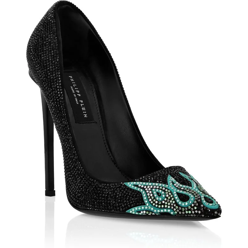 Verfraaid Show your grit and fashionable side with these evening pumps. Check out the details. Bejewelled suede upper Genuine leather sole Inner lining, leather footbed 12 cm heel