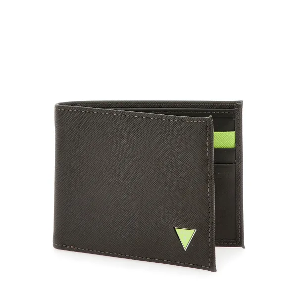 Guess Triangle herenportemonnee, zwart polyurethaan. Authentieke Guess-merkbagage - streetwear/sportswear design van Guess - Guess voor modebewuste mannen, perfect voor dagelijks gebruik - de zwarte Guess-portemonnee past perfect bij de rest van je garderobe - comfortabel polyurethaan materiaal - klassieke driehoekvorm -