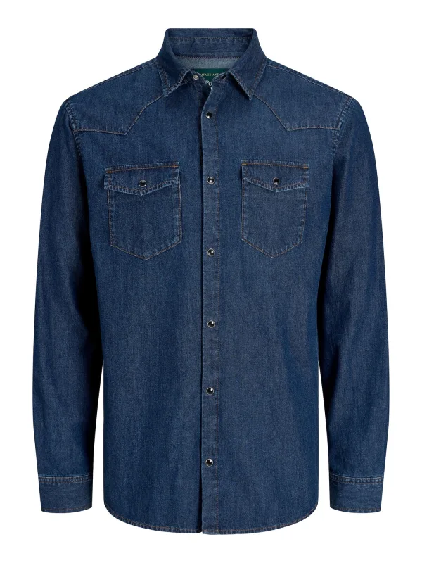 Materiaal: Denim; Motief: Effen; Kraag: Kentkraag; Pasvorm: Regular fit; Armlengte: Lange mouw