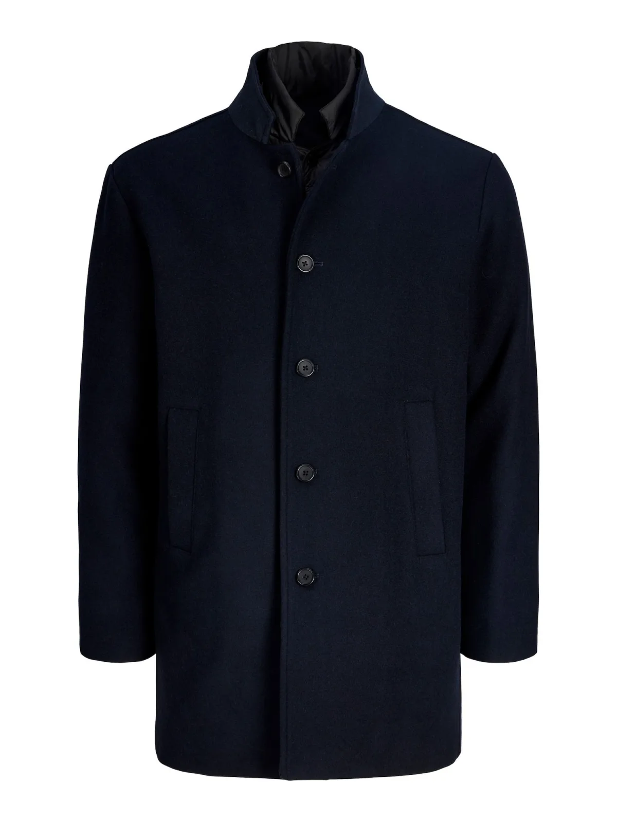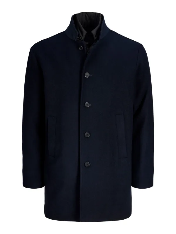 Type mantel: Klassieke mantel; Design: Drukknopen, Knop placket, Gelaagde look, Staande kraag, Zakken aan de zijkant; Type sluiting: Knoopsluiting; Voering: Licht gevoerd; Materiaal: Gerecycled materiaal; Motief: Effen; Extra's: Stiksels, Op staal naden; Pasvorm: Losse pasvorm; Lengte: Normale lengte