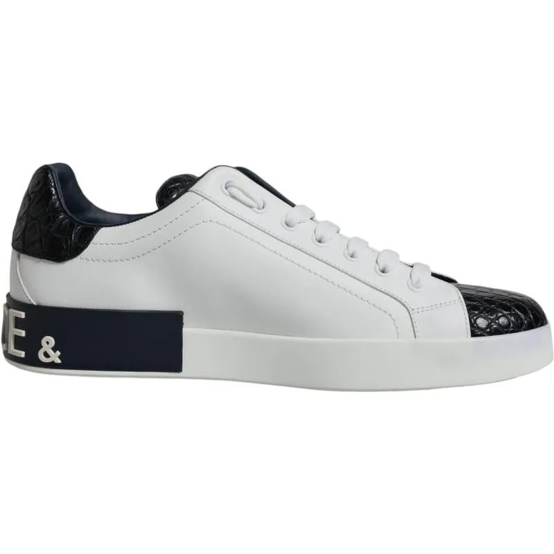 Stap naar buiten, val op en maak een statement. Deze Dolce & Gabbana sneakers brengen Italiaanse luxe naar je dagelijkse stijl. Ervaar ongeëvenaard comfort en een opvallend ontwerp. Het bovenwerk van premium leer, met zijn krokodil-gegraveerde accenten, biedt duurzame en onderhoudsarme slijtage. Geniet van een veilige, verstelbare pasvorm met de klassieke vetersluiting. De rubberen zool biedt stabiliteit die de grond omarmt. Perfect om je casual look een upgrade te geven, deze sneakers combineren moeiteloos high fashion met technologie voor comfort gedurende de hele dag.