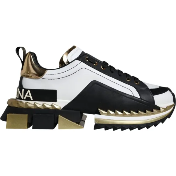 Stap naar buiten, val op en maak de straten van jou. Ervaar ongeëvenaarde stijl met deze Dolce & Gabbana Portofino sneakers. Gemaakt van hoogwaardig leer, bieden deze sneakers Italiaanse luxe voor je dagelijkse garderobe. Het zwart-witte kleurblokontwerp zorgt ervoor dat je de aandacht trekt, terwijl de goudkleurige accenten een vleugje weelde toevoegen. De vetersluiting biedt een veilige, verstelbare pasvorm. De robuuste rubberen zool zorgt voor stabiliteit. De onderhoudsvriendelijke constructie betekent dat ze klaar zijn voor alles. Verhoog je look moeiteloos.