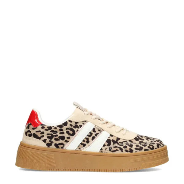 POSH by Poelman Lilly sneakers met panterprint ecru/zwart/rood Prijzen