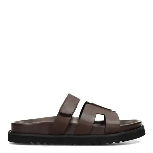 POSH by Poelman Scottie leren slippers donkerbruin Prijzen