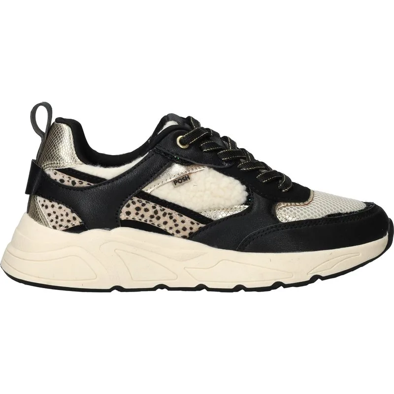 Deze POSH by Poelman Sneakers zijn voor Dames in de kleur Zwart. De schoenen zijn gemaakt van het materiaal Kunstleer;Textiel en de voering is gemaakt van . De voetbreedte van de schoenen is G - normaal.