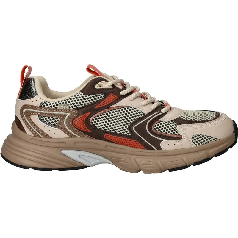 Deze POSH by Poelman Sneakers zijn voor Dames in de kleur Beige. De schoenen zijn gemaakt van het materiaal Textiel;Kunstleer en de voering is gemaakt van . De voetbreedte van de schoenen is G - normaal.