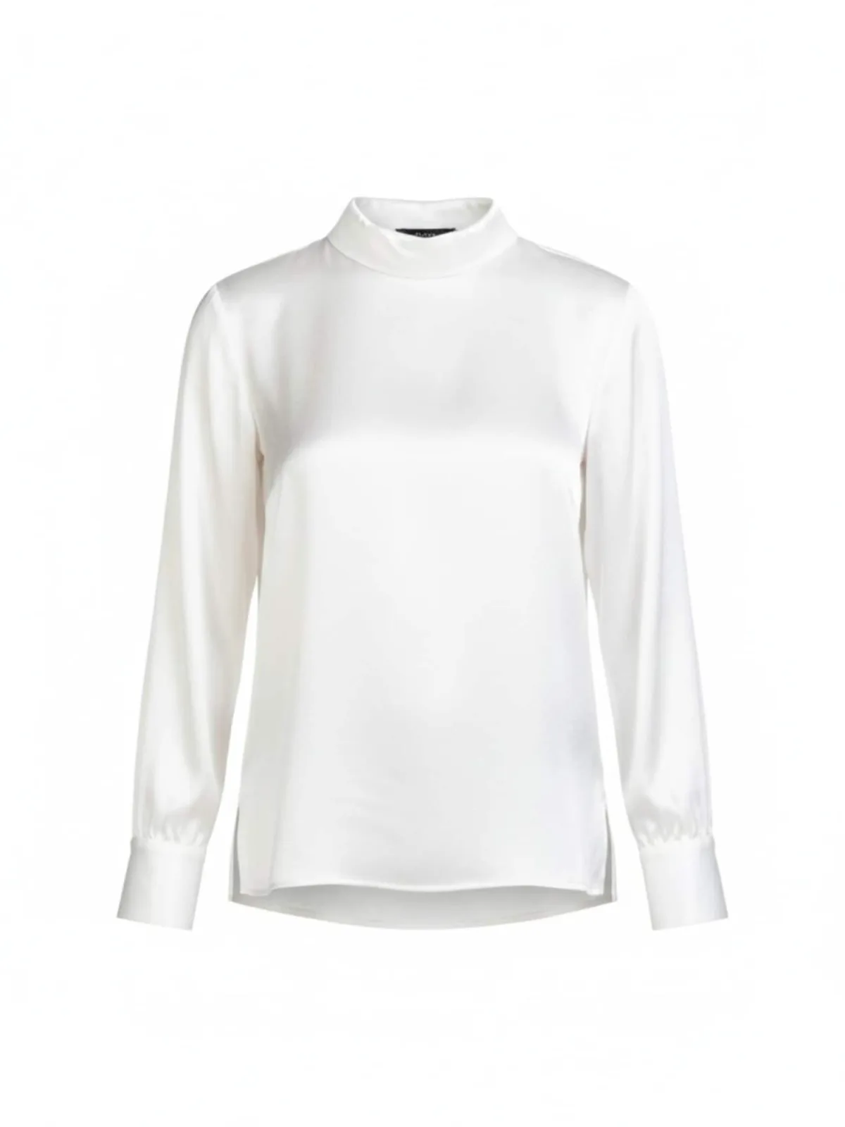 Blouse type: Blouseshirt; Materiaal: Zijde; Motief: Effen; Kraag: Opstaande kraag; Pasvorm: Normale pasvorm; Armlengte: Lange mouw; Lengte: Normale lengte