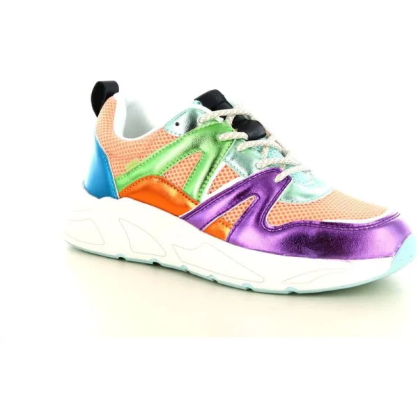 Ontdek de perfecte mix van stijl en comfort met de 'CAROCEL' sneaker voor dames uit de Posh by Poelman collectie. Met een bovenwerk van paars metallic imitatieleer en een opvallende zalm kleur mesh, trekt deze sneaker direct de aandacht.Het model is voorzien van een vetersluiting en een chunky zool met een hoogte van 4 cm, wat zorgt voor een trendy en eigentijdse uitstraling. De voering van textiel en het vaste voetbed garanderen comfort gedurende de hele dag.Deze kleurrijke sneaker is niet alleen een fashion statement, maar zit ook nog eens super comfortabel. Het maakt elke outfit helemaal af, of je nu kiest voor een casual look of iets meer opvallends.Let op: dit model valt klein uit, we raden aan om een maat groter te bestellen voor de perfecte pasvorm.Het label POSH by Poelman staat bekend om zijn betaalbare en trendy schoenen. Met een focus op comfortabele musthaves biedt dit Nederlandse merk altijd een on trend collectie. Bovendien zijn alle schoenen net even anders dan anders, waardoor je voor elke outfit een echte eyecatcher hebt!Upgrade je sneakercollectie met de 'CAROCEL' 18582X9 sneaker en voeg een vleugje kleur en stijl toe aan je dagelijkse looks. Bestel nu en maak een statement met je schoeisel!