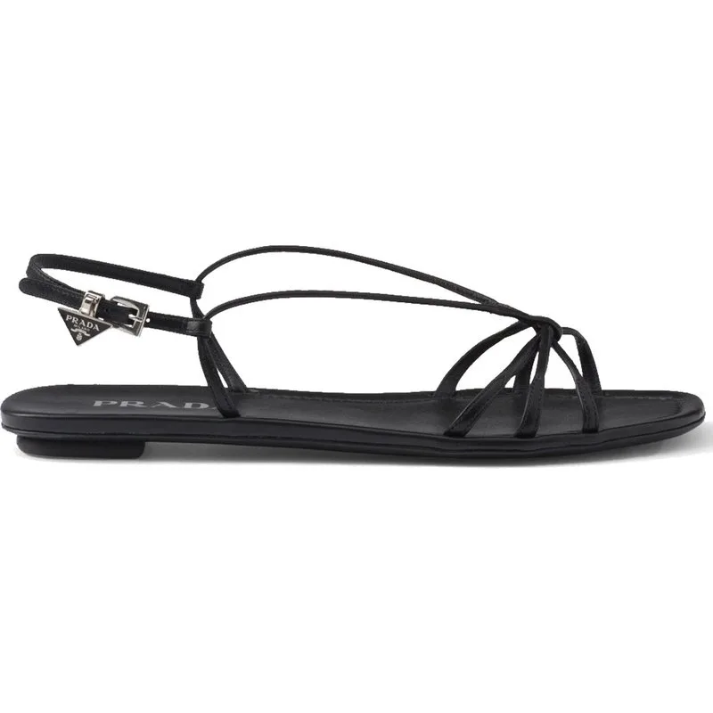 - Samenstelling: 100% kalfsleer - Binnenvoering: Leren - Bovenste: Leren - Zool: Leren - Open teen - Vierkante teen - Verstelbare gesp sluiting - Geëmailleerd driehoek logo - Gemaakt in Italië - Geslacht: VROUWEN -