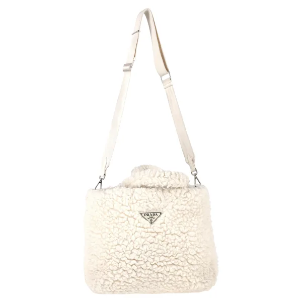 Prada Logo Plaque Shear Handtas in Witte Kasjmier Prijzen