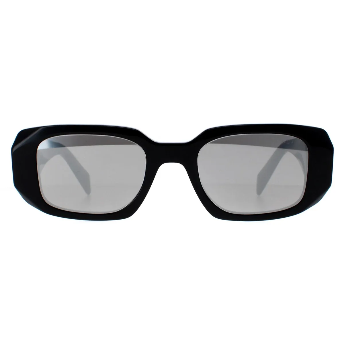 Prada PR17WS 1AB2B0 zwart lichtgrijs spiegelzilver zonnebril is een stijlvol ontwerp gemaakt van hoogwaardig acetaat materiaal dat duurzaamheid en comfort garandeert. De slapen zijn versierd met het iconische Prada logo, wat een vleugje verfijning toevoegt. Deze zonnebril is perfect voor elke gelegenheid, of het nu een dagje in de zon is of een avondje uit in de stad.