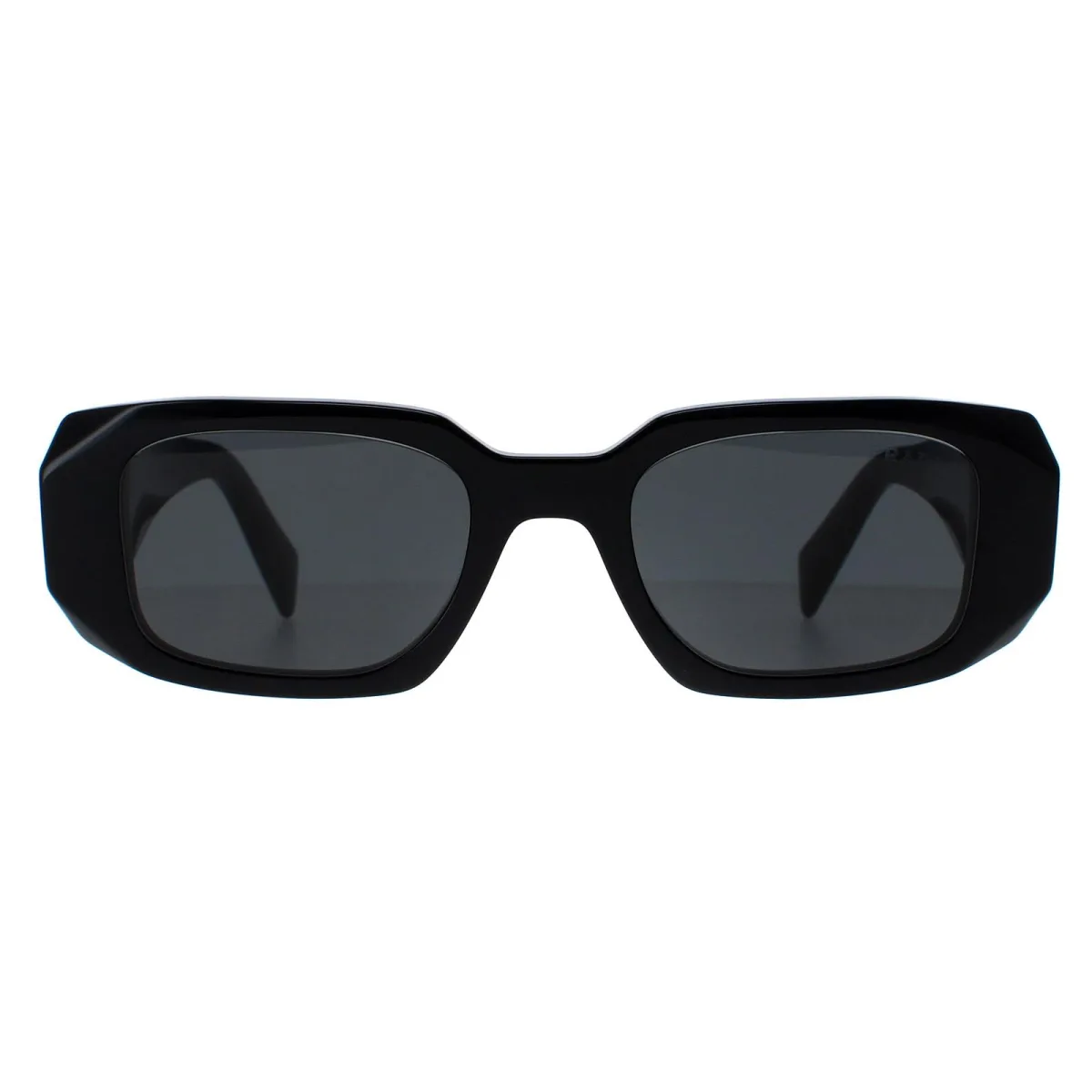De Prada PR17WS 1AB5S0 zwart donkergrijs zonnebril is een stijlvol ontwerp gemaakt van hoogwaardig acetaatmateriaal dat duurzaamheid en comfort garandeert. De slapen zijn versierd met het iconische Prada logo, wat een vleugje verfijning toevoegt. Deze zonnebril is perfect voor elke gelegenheid, of het nu een dagje in de zon is of een avondje uit in de stad.