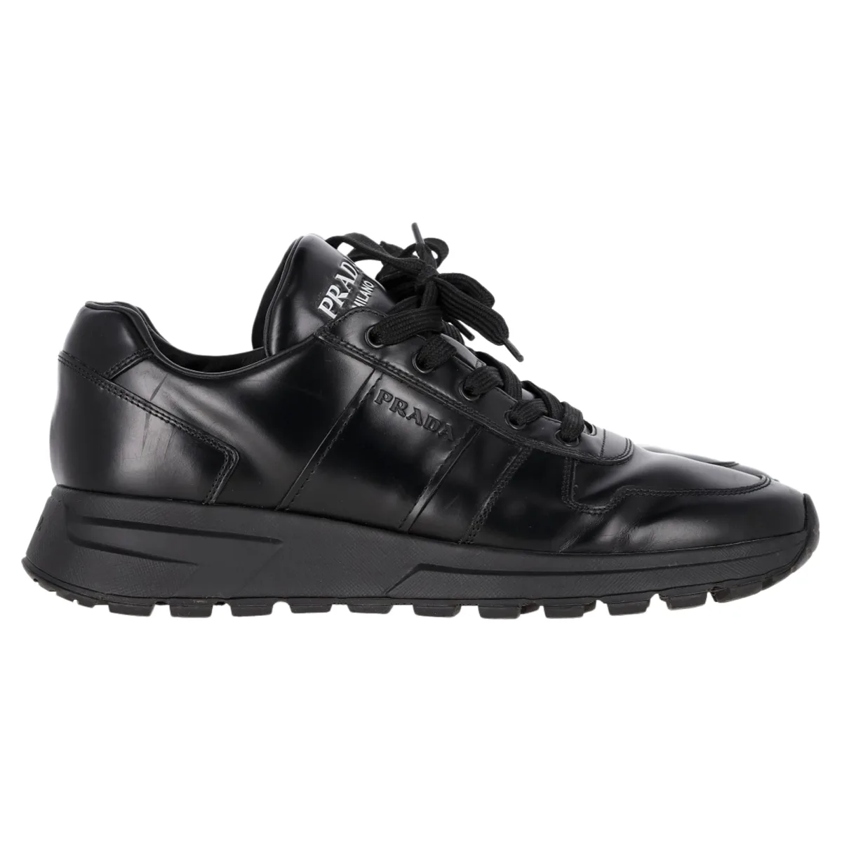 | Prijsgeschiedenis voor Prada Prax 01 Veterschoen Lage Sneakers in Zwart Kalfsleer | |
