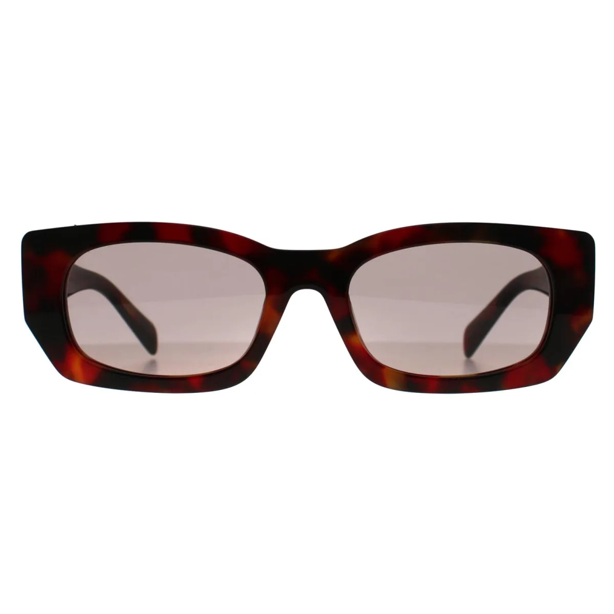 Prada Rectangle Womens Poppy Tortoise Light Purple Brown PRB05S zonnebril herdefinieert gedurfde expressie met een zelfverzekerd gevormd acetaat montuur over de hele rand, waarbij hedendaagse structuur wordt gecombineerd met tijdloze details voor een naadloze balans tussen avant-gardistische styling en functionaliteit.