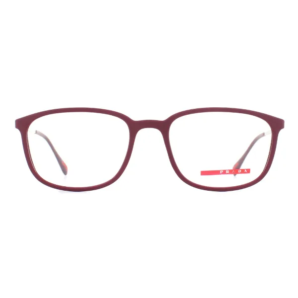 Prada sportglazen ps03HV vyx1o1 bordeaux rubber mannen zijn gemaakt van plastic en metaal met een rechthoekige vorm en zijn ontworpen voor mannen