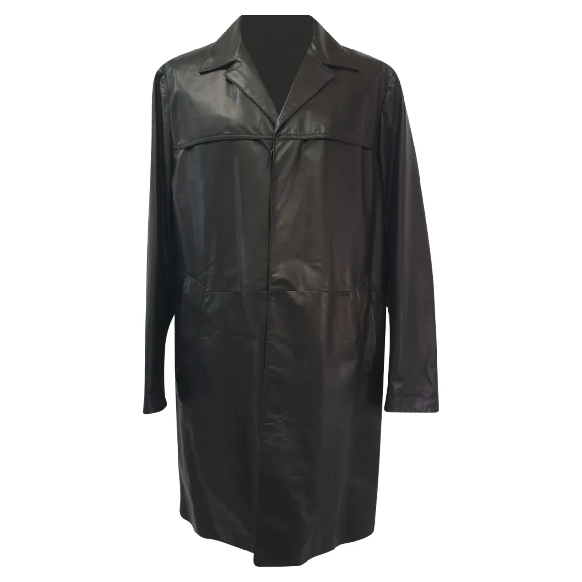 Aanbevolen verkoopprijs Geef je bovenkleding een upgrade met de Prada trenchcoat met verborgen sluiting, vervaardigd uit hoogwaardig zwart lamsleer voor een strakke, moderne look. Het minimalistische ontwerp met verborgen knopen zorgt voor een cleane, verfijnde uitstraling die zowel tijdloos als veelzijdig is. **Stijltip:** Combineer hem met een nette pantalon en leren laarzen voor een stijlvolle, elegante outfit, perfect voor in de stad of tijdens een avondje uit. Prada trenchcoat met verborgen sluiting in zwart lamsleer Conditie: Uitstekend Gebruikssporen: Geen zichtbare gebruikssporen Verpakking: Geen Kleur: Zwart Materiaal: Leer | lamsleer Maat: EU | 50 Afmetingen: Lengte: 1000; Borst: 1160 SKU: MRPPUGBCL575986M