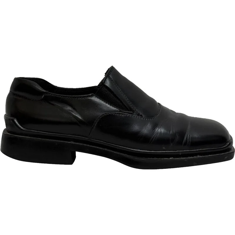 VINTAGE, NIEUWE PARTIJPRIJS De Prada vierkante loafers in zwart leer hebben een moderne vierkante neus die een hedendaagse uitstraling toevoegt aan een tijdloos loaferontwerp. Met de verfijnde ambachtelijkheid die je van Prada mag verwachten, biedt de gladde leren constructie zowel duurzaamheid als ingetogen elegantie. Draag ze met een op maat gemaakt broek en een strakke button-down voor een verzorgde kantoorlook, of combineer ze met donkere denim en een gestructureerde blazer voor een elevate smart-casual look. Prada vierkante loafers in zwart leer Staat: Goed Gebruikssporen: Gemiddelde gebruikssporen, gemiddelde kreukeling. Verpakking: Geen Kleur: Zwart Materiaal: Leer | leer Maat: UK | 7 Afmetingen: Hakhoogte: 30; Binnenzoollengte: 300 SKU: RFCPUGBSH719475M