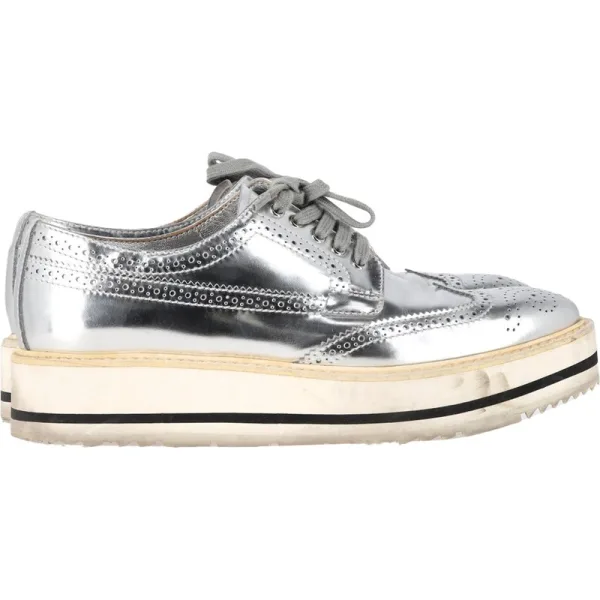 | Prijsgeschiedenis voor Prada Wingtip Oxford platform sneakers in metallic zilverkleurig leer | |