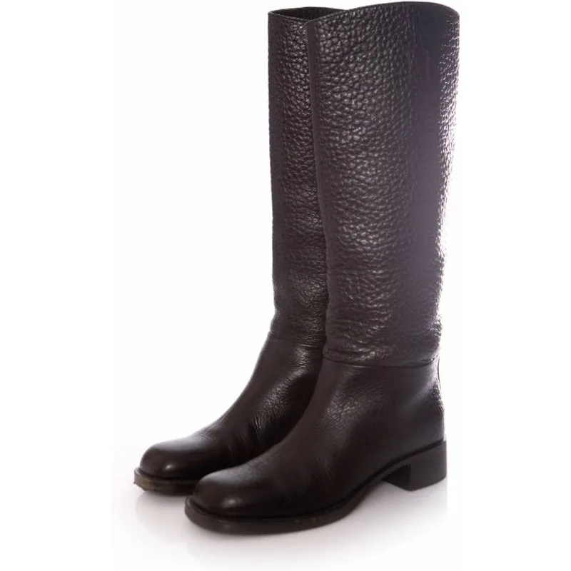 Aanbevolen verkoopprijs Prada laarzen van zwart generfd leer, maat 37,5. Dit product is slechts een paar keer gedragen en verkeert in goede staat. Inclusief originele stofzak. Afmetingen: hoogte: 400 mm
